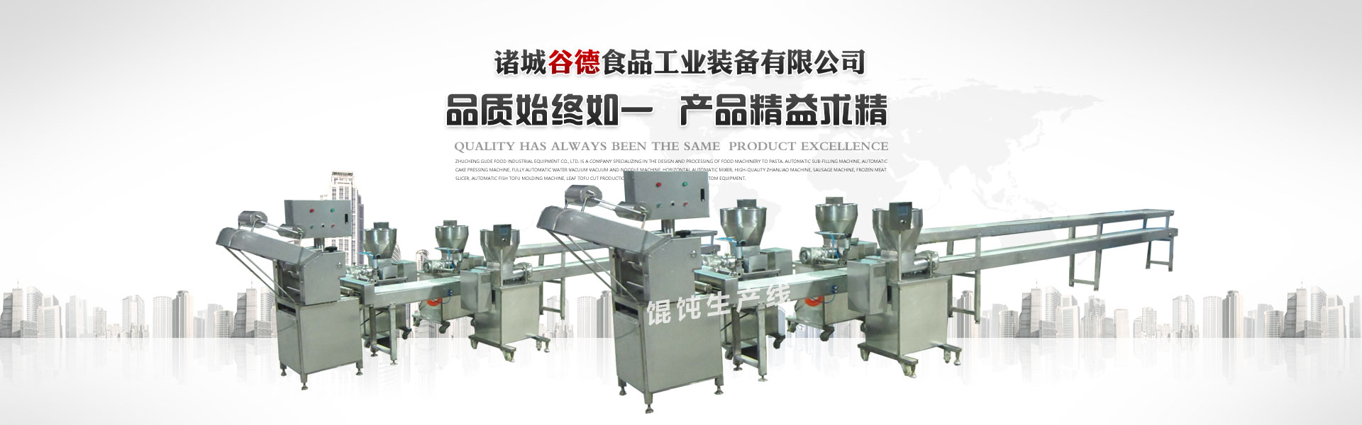 諸城谷德食品工業裝備有限公司坐落于美麗的“中國龍城,舜帝故里”--山東諸城。是一家專門從事食品機械以面食為主設計加工的企業,專業生產定制全自動面皮生產線、圓形水餃皮沖壓成型機、半自動餃子流水線、半自動餛飩流水線、全自動數控定量分餡機、全自動壓餅機、全自動進水真空負壓和面機、臥式自動攪拌機、優質斬拌機、灌腸機,凍肉切片機,全自動魚豆腐成型機,全自動千葉豆腐切塊生產線、等大型定制設備。